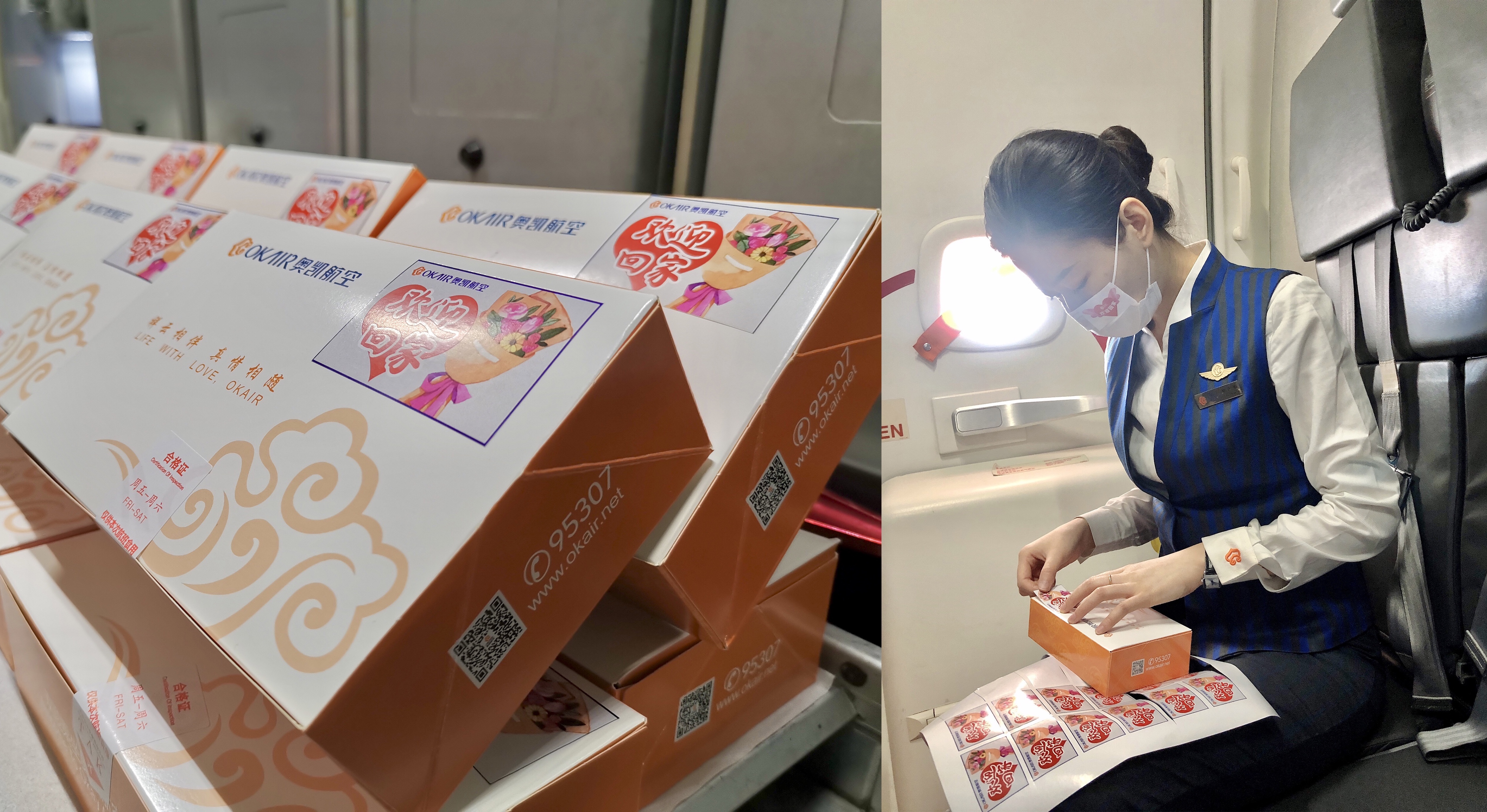 12时37分,接英雄回家的BK2830航班从武汉起飞。为了表达对英雄们的敬意和祝福,奥凯航空乘务组特别准备了手语舞《谢谢你》,每一个动作,每一句歌词,都是奥凯人真实情感的倾诉,“谢谢你,感谢有你,世界更美丽......”。乘务组还细心的为每一份餐食都贴上了写有“欢迎回家”字样的小贴画,以表达对全体医护人员衷心的祝福,并通过与白衣天使合影留念的方式,记录下这难忘的时刻。