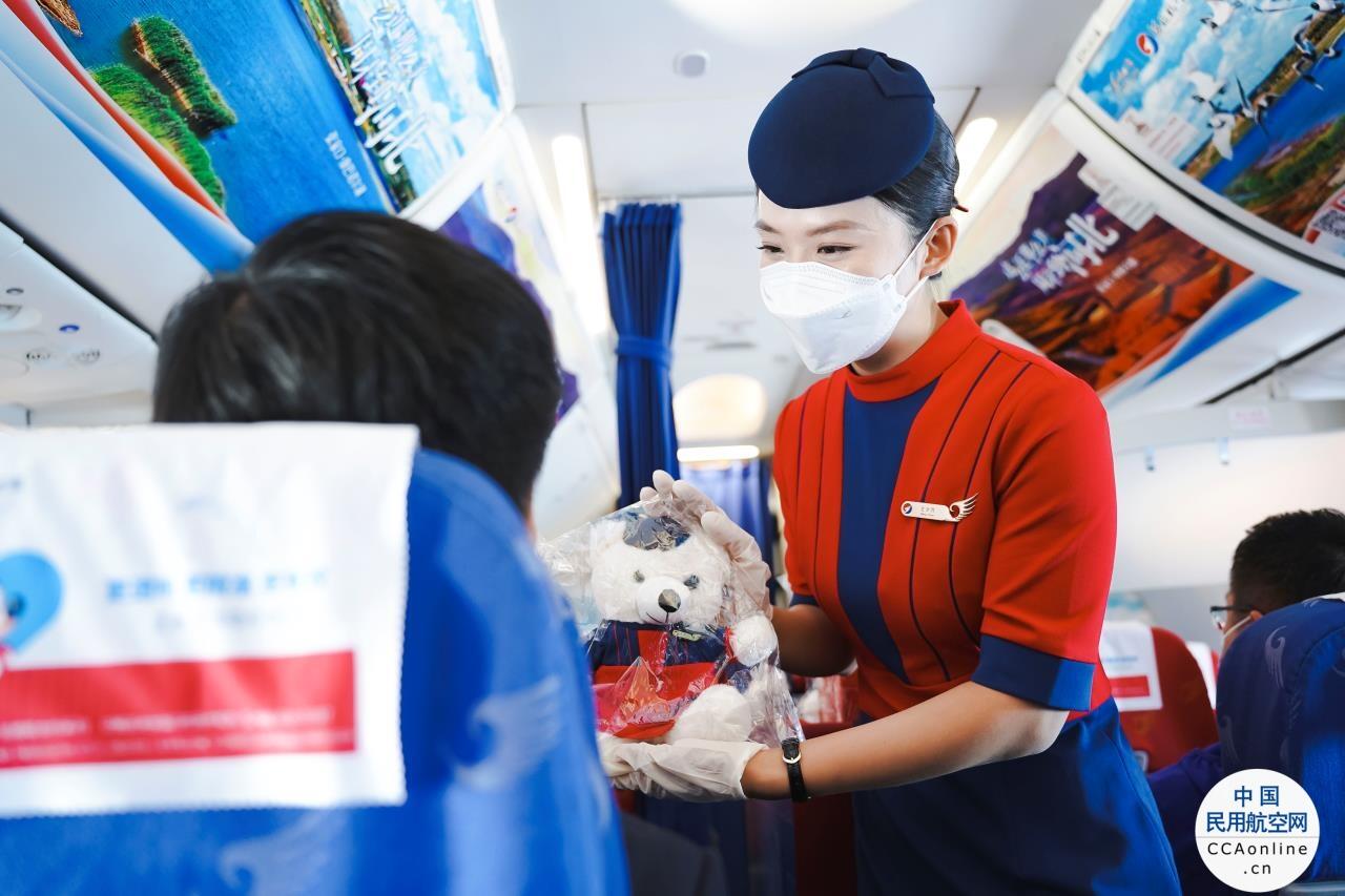 活动中,河北航空还为旅客精心准备了“一季一景”主题明信片、定制款随行茶具、定制小熊玩偶“河小可”“河小爱”等留作旅途纪念。