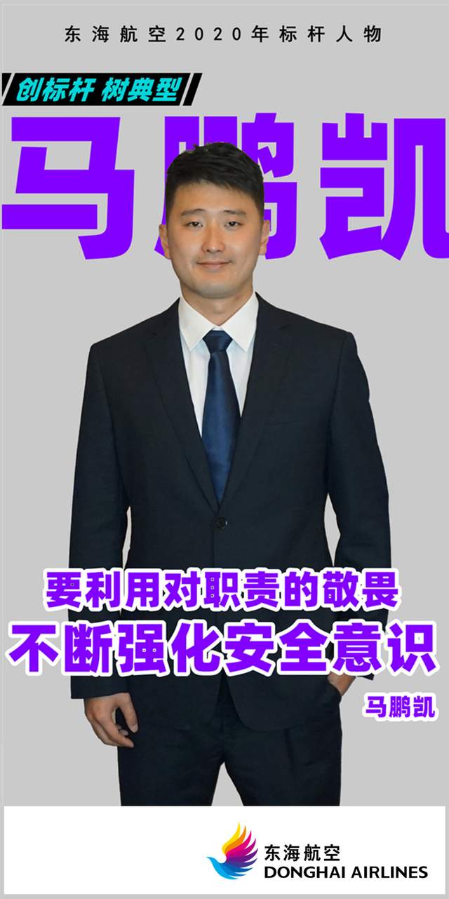 马鹏凯,是东海航空保卫部的一名资深安全员,他谨守职责担当,恪守职业道德,认真履行安全员自身工作要求.以安全第一为原则,与机组共同努力将旅客安全送达目的地。