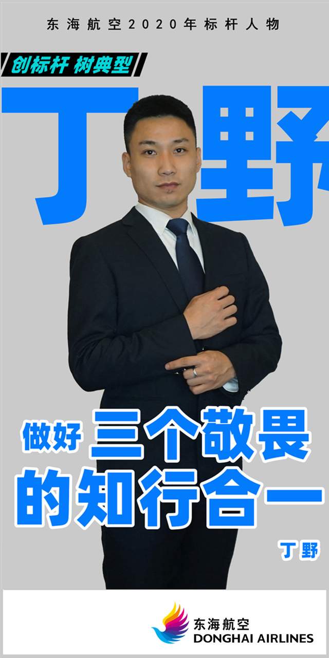 丁野,曾经服役于中国人民解放军重型特种合成72旅,于2018年09月退出现役,同年入职东海航空保卫部。他有着优良的品质,时刻都秉承着积极向上的职责态度参与每项工作。在安全员初训期间,个人考核成绩优异表现良好,获得了“航空安全员初任训练优秀区队长”。