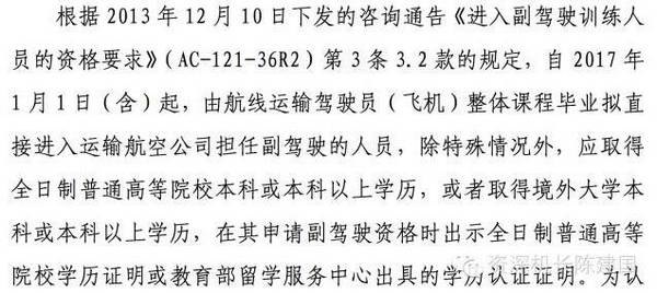 2 局方要求完成本科学历教育,如果是在国外完成的,那么必须是教育部认可的学历教育,这些把很多野鸡大学都关在了门外,如果你从一个不被教育部认可的大学完成学历教育,你可能进不了航空公司!