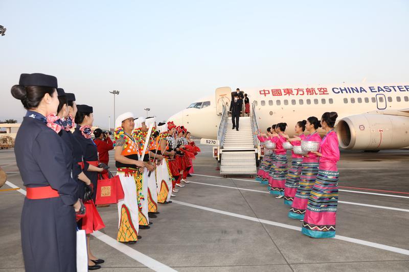 1月19日春运迎来节前运输高峰之际,东航MU5973/4昆明-芒市-昆明民族特色航班首航。这也是目前全国第一个民族特色航班。