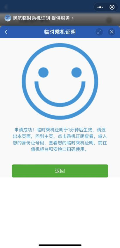 60秒后返回首页,输入身份证号,即可查看生成的二维码,用于临时乘机。