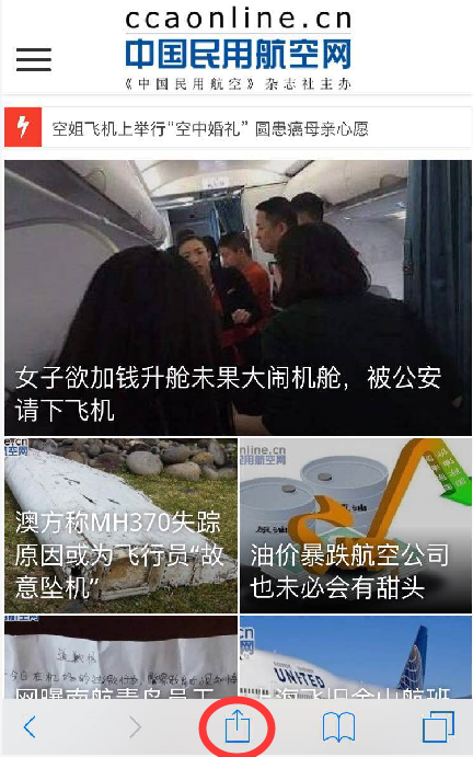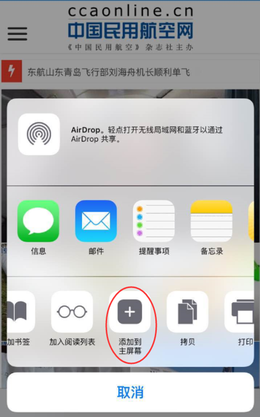 1、苹果手机用户可使用Safari浏览器打开中国民用航空网www.ccaonline.cn,选择分享按钮→添加到主屏幕即可;