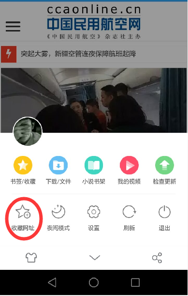 2、安卓手机用户可使用浏览器打开中国民用航空网www.ccaonline.cn,选择收藏网址→收藏至桌面即可。