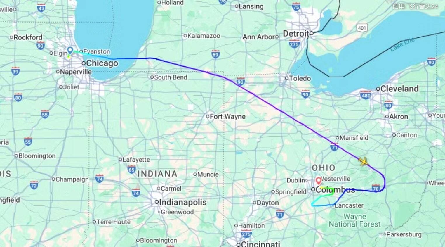 该航班原定从奥黑尔机场起飞时间为晚上7:30,但由于延误,实际起飞时间为晚上9:26。原定到达华盛顿国家机场的时间为晚上10:41。飞机从芝加哥向东飞行,随后转向东南方向前往华盛顿特区。飞行约44分钟后,机组人员发现挡风玻璃出现裂痕,出于安全考虑,决定备降至哥伦布的约翰·格伦国际机场(CMH)。