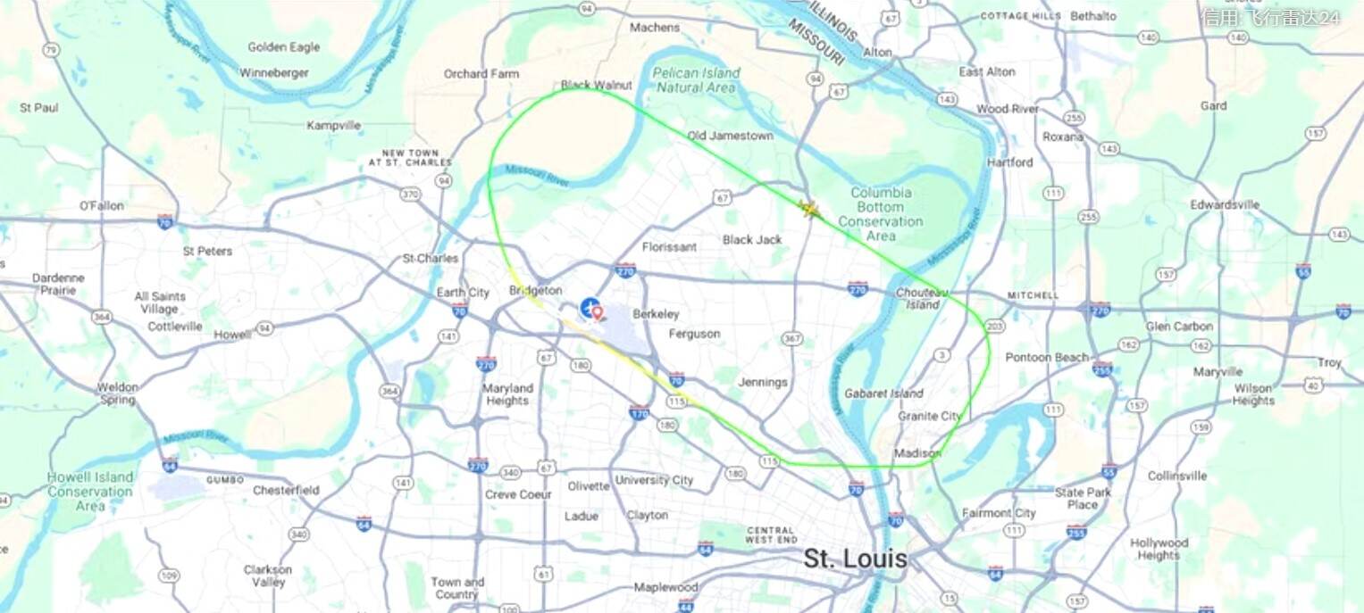 达美航空DL9962航班从密苏里州的圣路易斯兰伯特国际机场起飞前往密歇根州的底特律韦恩县机场,达美每天在这条90分钟航程的航线上双向提供四次航班服务。