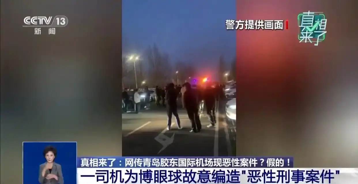 青岛市公安局机场公安局场区派出所民警 邹泉:网约车司机李某为了博眼球、刷存在感,故意编造了所谓“恶性刑事案件”的说法,还配上视频发给朋友。他的朋友高某把视频发到了微信群里,视频在群里传播开后,引发了一些群众的关注,有人以为机场周边真的发生了重大案件,这实际上已经扰乱了正常的社会公共秩序。