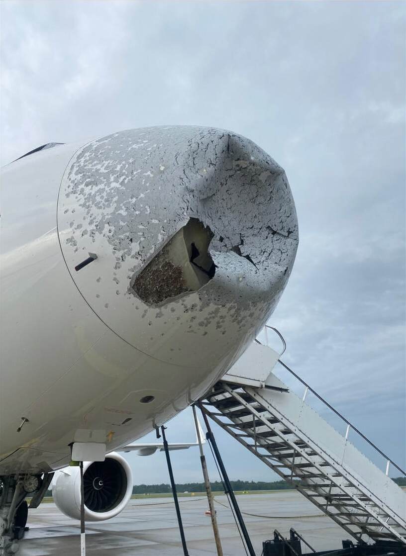 最严重的损坏集中在前端机身、机翼前缘和稳定面。此外,在雷达罩区域也记录到损坏,影响了气象雷达天线和下滑道系统。