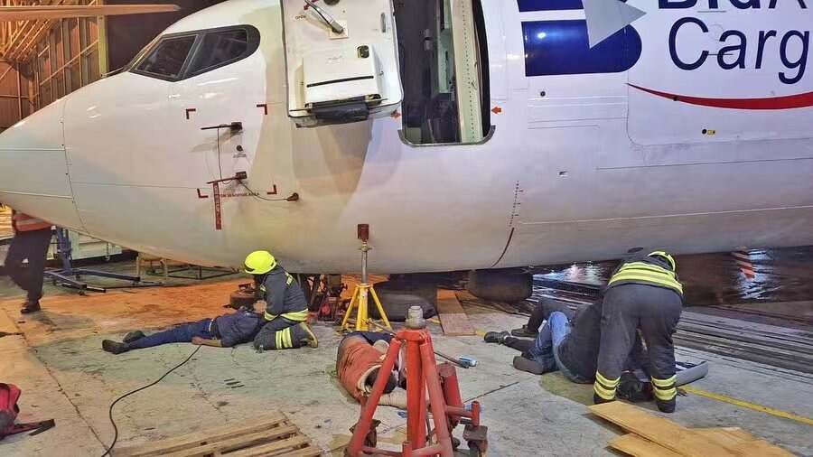 一架由非洲包机航空公司和 Bid Air Carg运营的波音 737-400F型货机(注册号:ZS-TEY)在例行维护工作中,前起落架从千斤顶上滑落,导致其向前坠落。事故中三名技术人员受重伤,事故发生在机库区域进行标准检查期间。