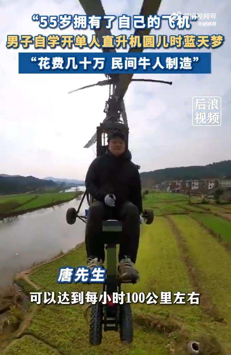 此前据多个媒体报道,“唐飞机”因多次驾驶购买的“共轴双桨超轻型飞机”受关注。他去年花费35万元购入一架“共轴双桨超轻型飞机”,加满油能续航40公里,最高飞行速度100公里/小时左右。“唐飞机”曾回应网友质疑,否认商业炒作,称超轻型飞行器不用考驾照。