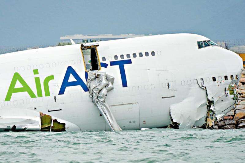 阿联酋航空货机坠海造成机场2名地勤死亡的事故,自本周一(20日)发生至今,有不少疑团未解开,涉事货机仍搁在机场北跑道外的防波堤载浮载沉,等待打捞俗称“黑盒”的飞行记录仪。运输及物流局局长陈美宝昨日与土耳其当局会面,表达深切关注,并要求土耳其方面继续提供协助,涉事机组人员会一直留港协助调查。有大律师指,事件有如外籍人士在港租车发生致命交通意外,警方会以“危险驾驶引致他人死亡”的暂定控罪,防止对方离开香港。