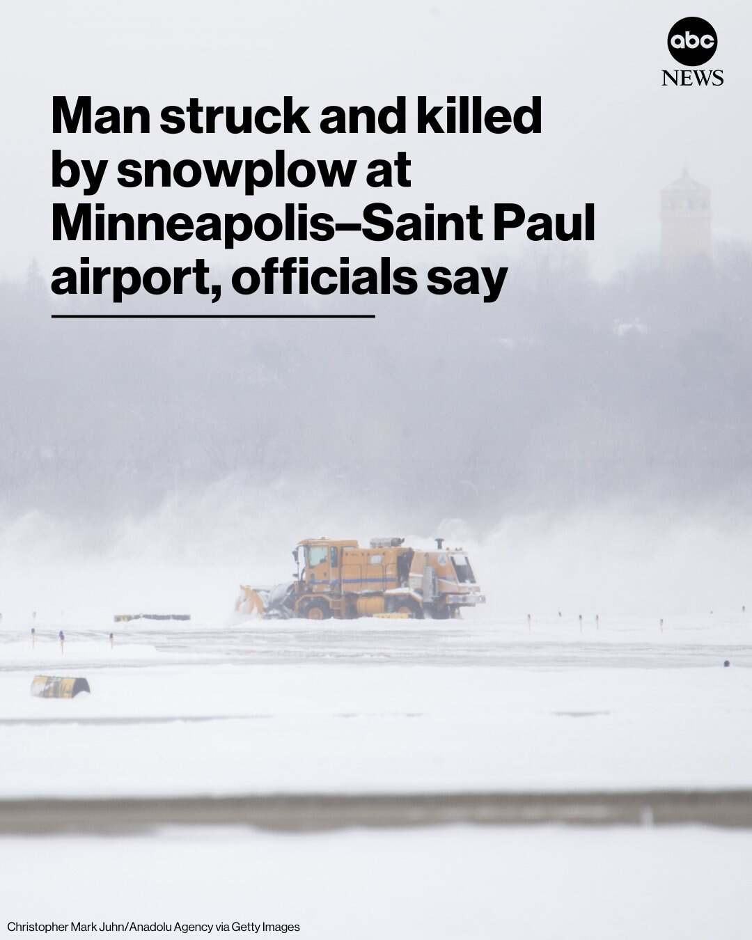 12月9日,一名47岁的男子在明尼阿波利斯-圣保罗国际机场被一辆扫雪车撞击身亡。