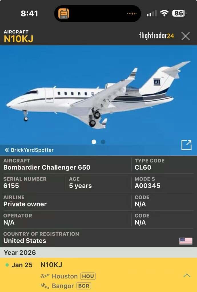 根据联邦记录,这架飞机登记在休斯顿的一家公司名下。
