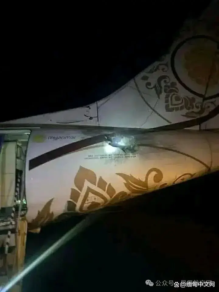 据缅甸国家国防与安全委员会与民航部门通报,涉事飞机注册号为XY-AGP,事发时已完成旅客与行李装载,处于起飞前关键阶段。克钦独立军(KIA)与人民民主阵线(PDF)联合出动多架搭载RPG式战斗部的FPV自杀式无人机突袭机场,尽管部分无人机被地面防空火力拦截,仍有至少2架突破防御,命中客机机头、机身中部与尾部发动机区域,造成机身结构与动力装置轻度至中度损伤,未引发起火。