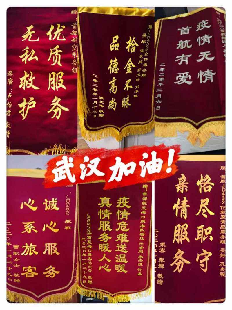 “疫情危难送温暖、真情服务暖人心“、“优质服务、无私救护“、”诚心服务,心系旅客“……疫情期间首都航空乘务员的卓越表现使得旅客纷纷写下表扬信或寄送锦旗。他们齐心协力、勇于担当,用真情服务温暖着被疫情恐惧笼罩的每位旅客。