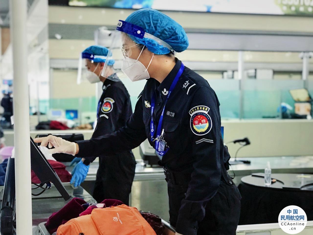石家庄机场安检认真做好疫情防疫工作,为避免旅客聚集,及时增开通道,确保旅客快速过检,防止旅客在待检区内长时间停留;加强旅客排队“一米间隔”的宣传引导,做到及时提醒,确保旅客等候时的安全距离;安检通道严格落实“随用随消、一客一消”制度,确保疫情防控工作落到实处。坚持对使用频繁的安检柜台、安检筐每两小时进行1次消毒,每日出港航班结束后,对安检现场进行全方位消毒。加强对易燃、易爆物品等各类危险品的检查,针对节日特点,加大宣传引导力度,加强对特殊人群的检查,如儿童等,防止夹带火柴、鞭炮等,全力确保空防安全。