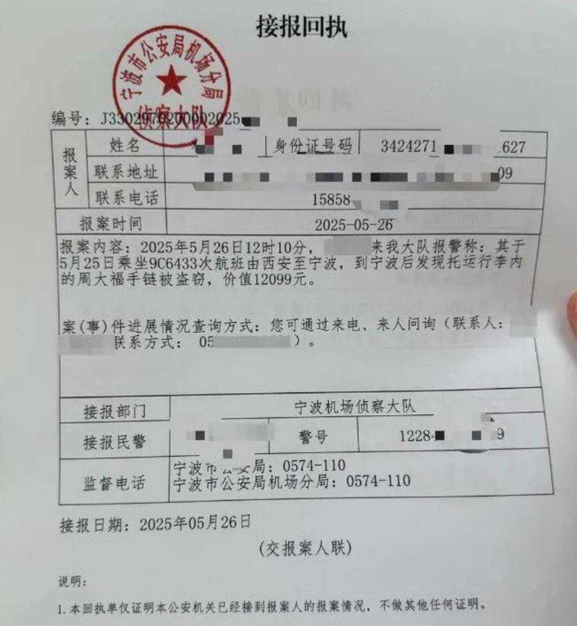近日,市民杨女士乘坐春秋航空航班从西安返回宁波时,托运行李中价值1.2万余元金手链丢失引关注。