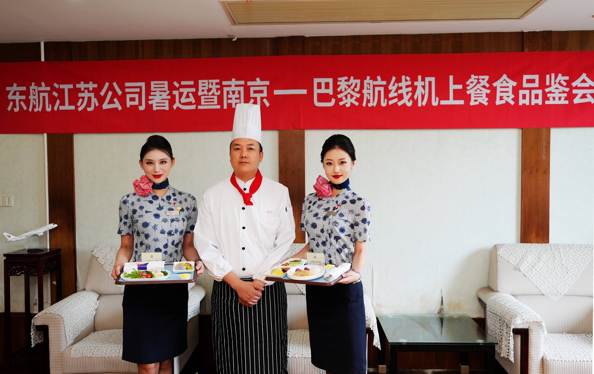 7月22日,中国东方航空江苏有限公司(以下简称“东航江苏”)在南京举行暑运暨南京-巴黎航线机上餐食品鉴会。此次活动由其供应商江苏航食配餐服务有限公司(以下简称“江苏航食”)承办,重点展示了南京-巴黎航线餐食以及暑运餐供保障情况。