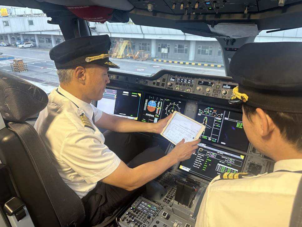 7月29日下午,从上海飞往北京的MU5119航班起飞前,飞行员在驾驶舱内进行细致的航前准备工作,确保复杂天气条件下飞行安全。