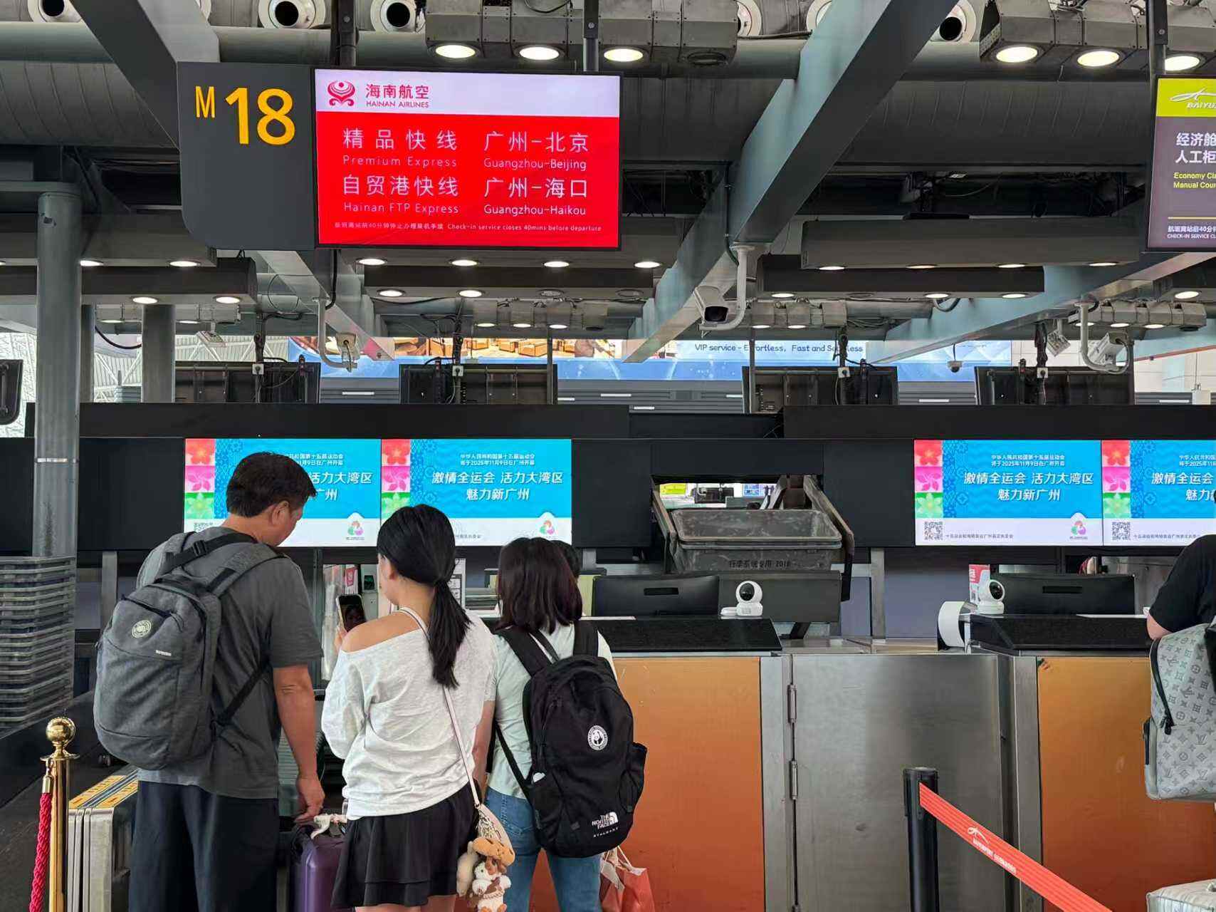 海南航空温馨提示:广州—北京航线无托运行李旅客可于航班起飞前30分钟在M18专属柜台办理值机,需托运行李或有特殊服务需求的旅客值机截载时间仍为航班起飞前40分钟(维持不变)。建议旅客通过海南航空APP提前办理电子登机牌以享受更便捷服务。海南航空“精品快线”持续打造“更便捷、更舒适、更优先”出行体验,更多详情请咨询海南航空服务热线95339或访问官方网站。