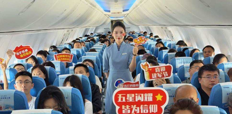 2025年8月1日,江西航空旅客服务部郑州班组以“弘扬八一精神,深植红色基因”为主题,开展八一建军节主题机上活动,通过“八一知识竞答、唱响红歌、真情分享”等互动环节,将八一精神带到云端,为本次旅程带来别样意义!