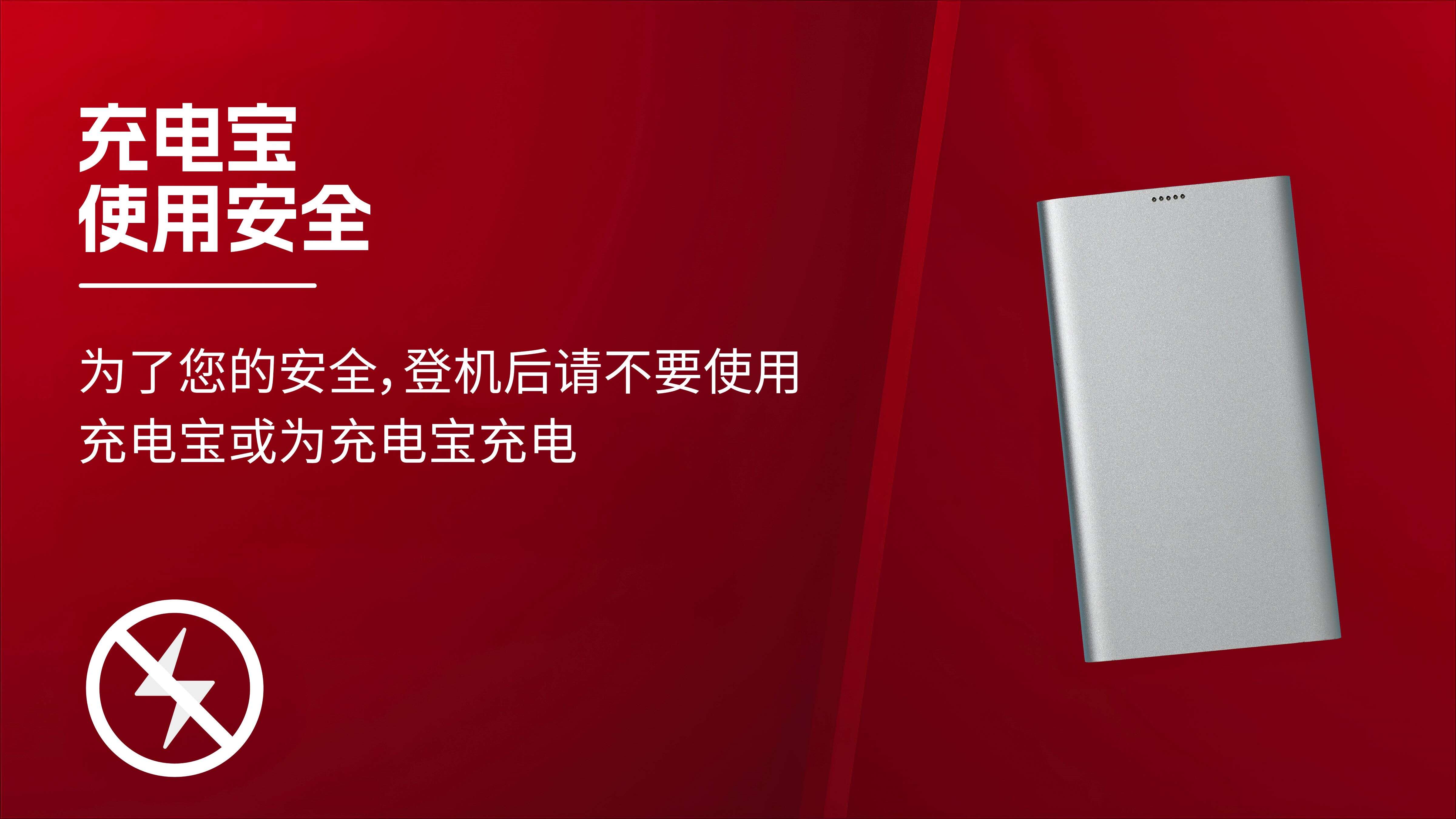 Ÿ 登机后禁止使用充电宝为任何个人电子设备充电;
