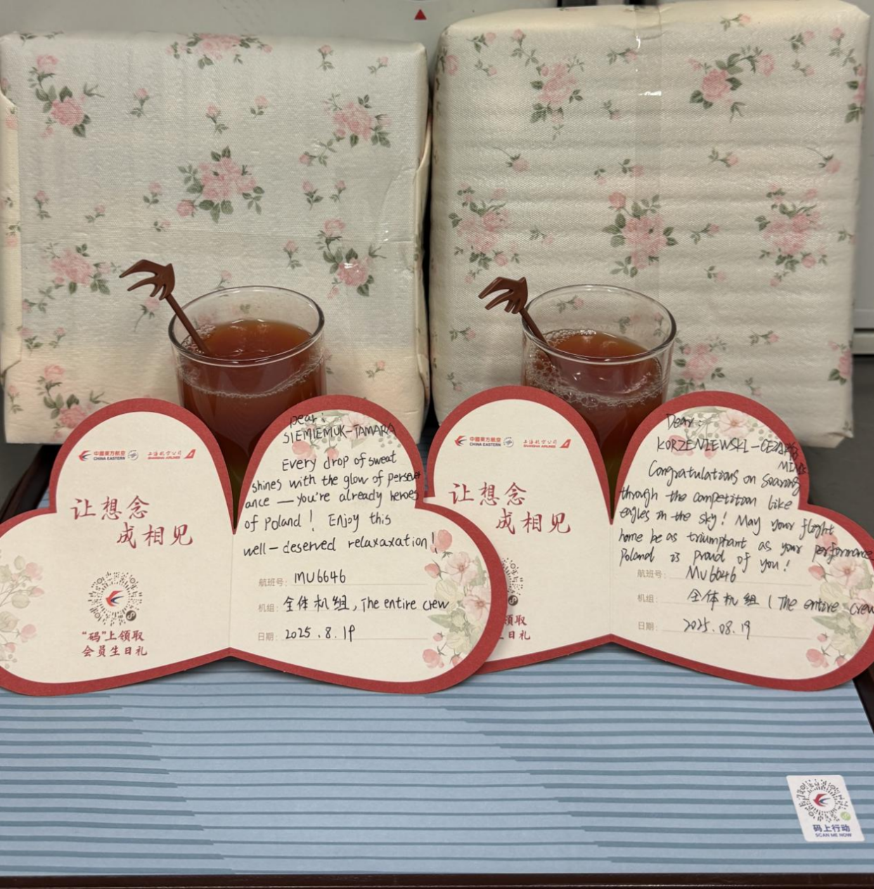 近日,第十二届世界运动会在成都圆满落幕。在MU6646双流至大兴的航班上,两位刚在世运赛场挥洒汗水、绽放光彩的波兰运动员,邂逅了一场跨越云端的暖心之遇。