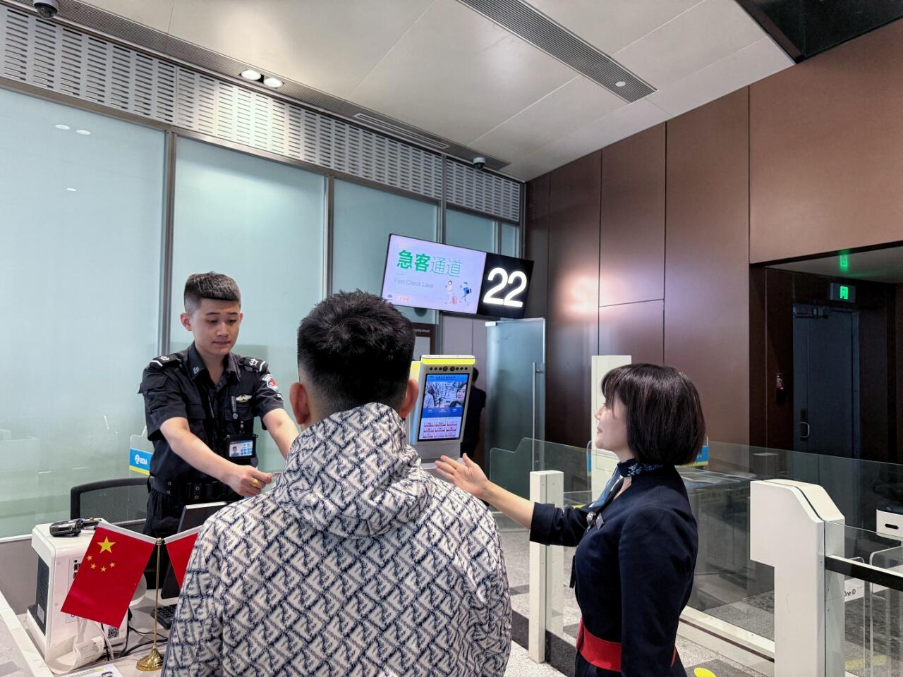 “兴畅飞”除了取消国内航班值机截载时间限制,还由大兴机场与东航协同打造“全链条顺畅出行”服务升级体验。依托专属保障沟通机制,工作人员主动预判、动态跟进旅客行程,实现全流程高效衔接。旅客抵达机场后,可在专属优先柜台快速办理值机托运,随即通过快速安检通道优先通行,候机区由机场服务大使提供引导衔接,旅客还可选乘电瓶车接驳服务,轻松直达登机口。从值机、安检到最终登机,每一环节均实现高效联动与资源优先配置,真正实现“到港即值机、值机即登机”的高效出行。