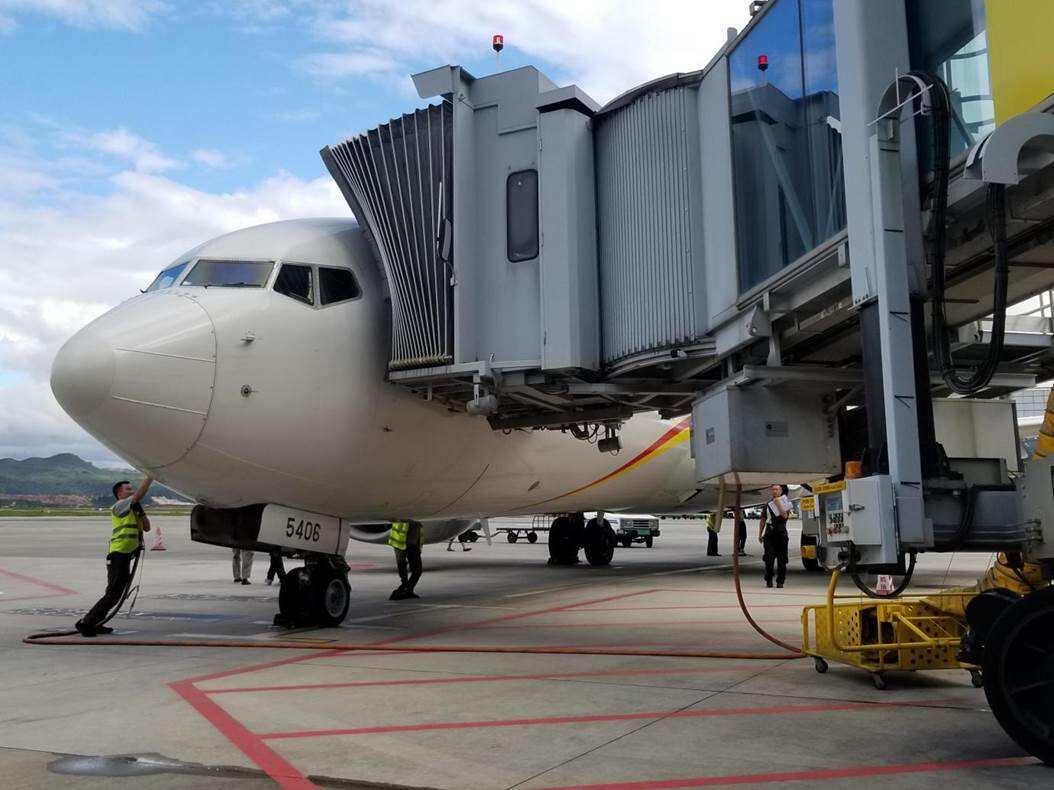 海南航空飞机正在接驳GPU地面电源