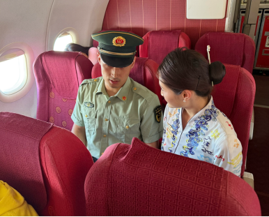 为了向退役军人表达真诚的祝福和崇敬之情,乘务长王晓在GS6471贵阳-徐州的航班上,通过客舱广播向他们表达了崇高的敬意和由衷的感谢,情真意切的话语让退役战士们感慨万分,纷纷表示:“当初离乡入伍时,满载亲人嘱托,听党指挥、能打胜仗,成为合格的军人。如今退伍返乡,我们也将牢记军人使命,脱下军装、建设家乡!”同样,在GS6477贵阳-乌鲁木齐的航班上,退役战士们动情地分享了自己在军旅生涯中的磨炼与成长,诉说着他们曾在边疆哨所,顶着凛冽寒风坚守岗位,用警惕的目光守护着祖国的每一寸领土;在榕江洪灾一线,与滔天洪水搏斗,用血肉之躯筑起生命的方舟,从死神手中抢回无数生命;也曾在烈日下挥洒汗水,刻苦训练,只为在危难时刻能挺身而出……动情的诉说引得客舱阵阵掌声。
