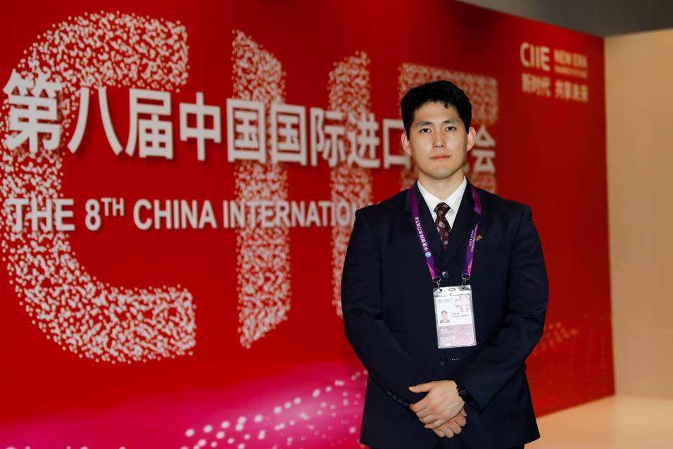 执飞国产大飞机C919的乘务员马思泉第一次参加进博志愿服务,他说,“能以志愿者身份服务进博,我感到无比自豪。在C919上,我们让世界看见中国智造,在进博馆里,我们让世界读懂中国开放。”
