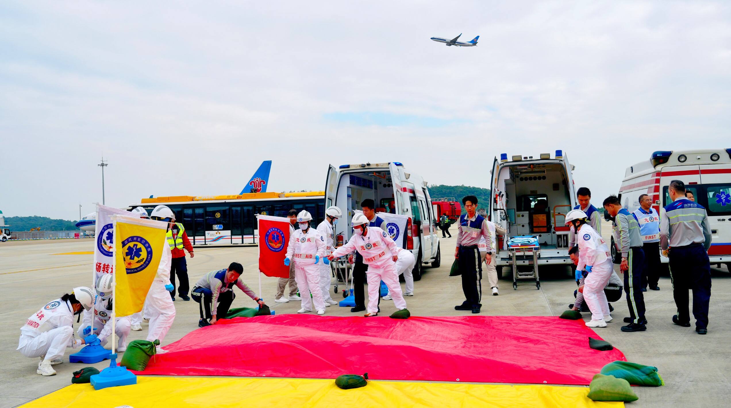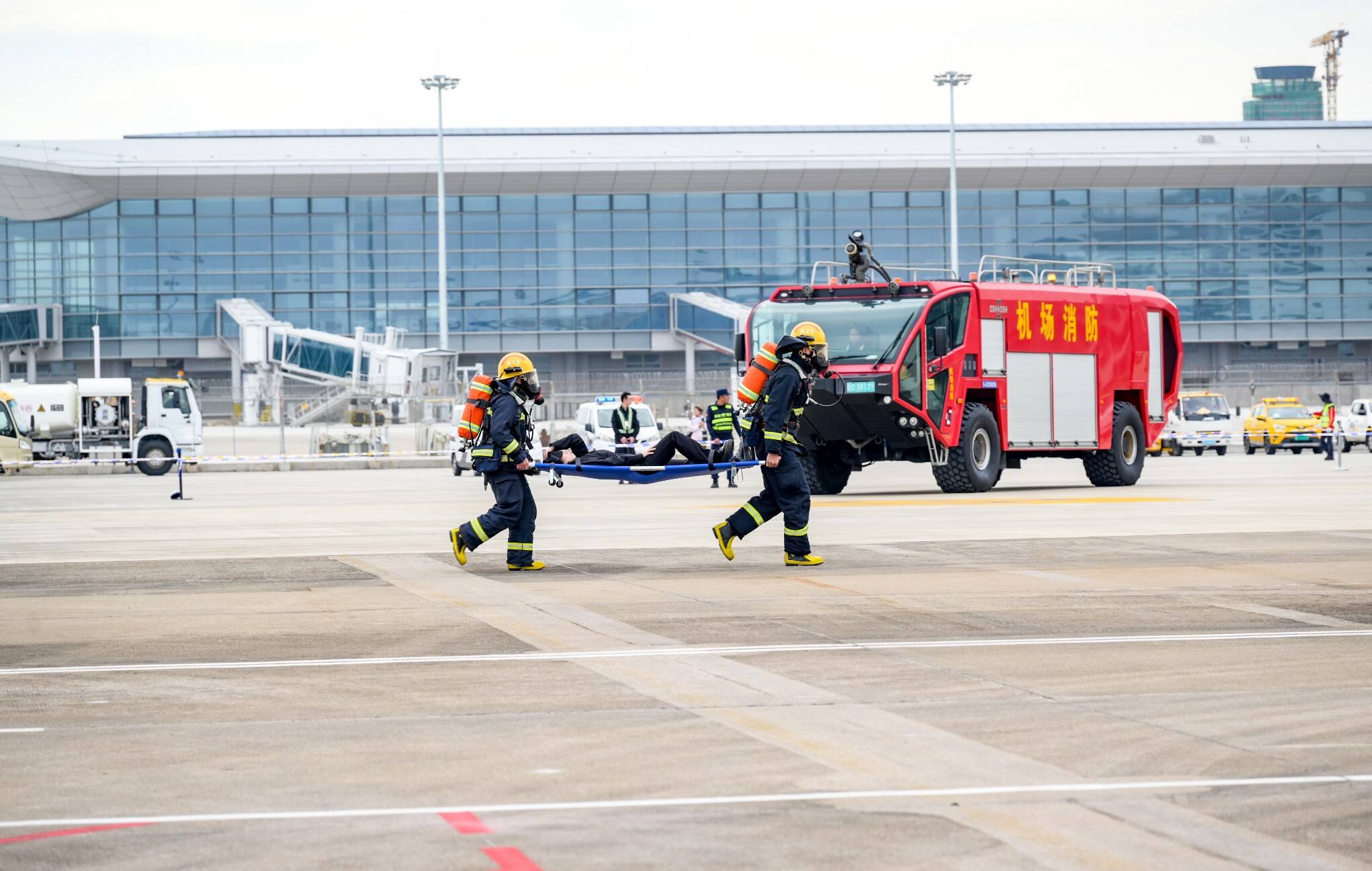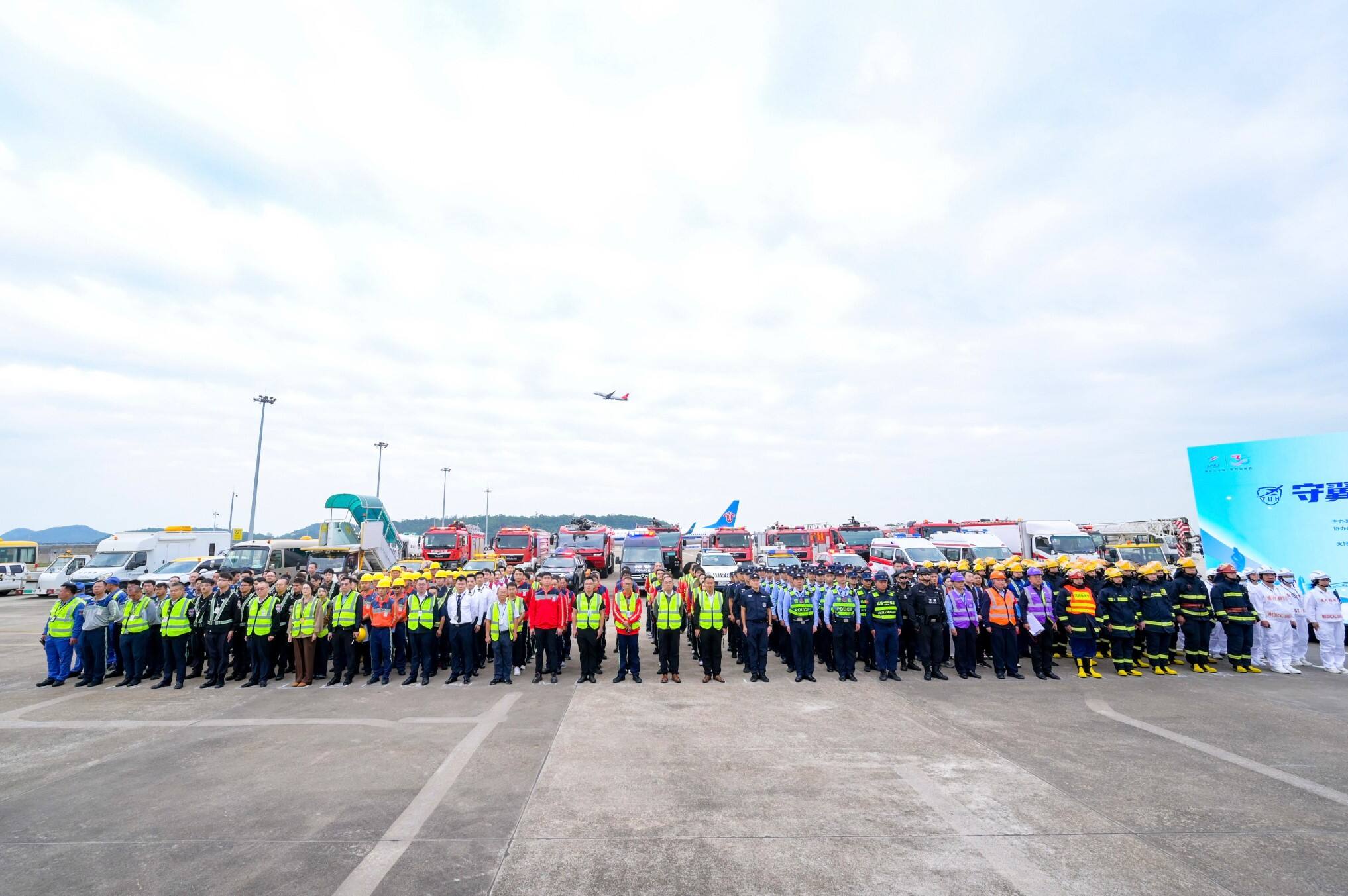 为持续提升珠海机场应对突发航空事件的综合应急处置能力,锤炼各救援单位间的协同作战水平,根据民航局每三年开展一次应急救援综合演练的要求,2025年11月13日,珠海机场成功举办“守翼·2025”大型应急救援综合演练。民航中南地区管理局张栋副局长带队全程督导,珠海市人民政府、珠海市交通运输局、珠海市应急管理局、珠海交通控股集团有限公司、中国民航科学技术研究院、航大联合航空设备有限公司等20余家单位60余名嘉宾在现场观摩本次演练。