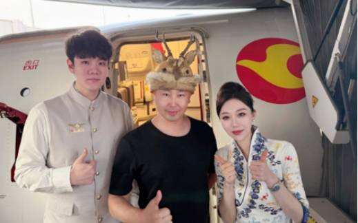 当天,在GS6664洛阳-海拉尔的航班上,乘务组主动识别到这支来自内蒙古大兴安岭的“森林民族”旅客团队,随即化身“空中向导”,细心地为其讲解安全须知与服务设施。在后续的沟通中得知,他们正是一支来自鄂伦春族的非遗宣传队伍,前几日在郑州完成一场非遗文化展演,此行乘坐天津航空航班返乡。