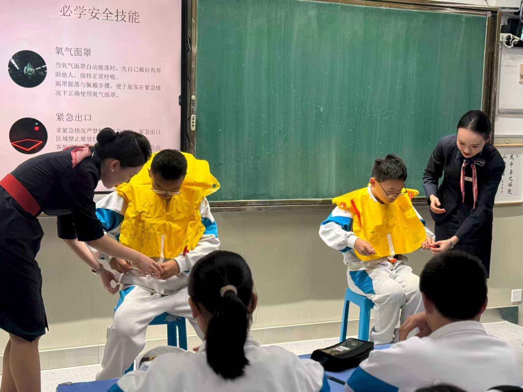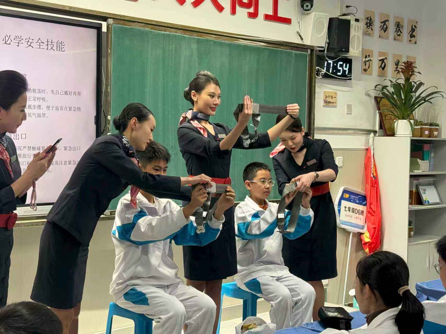 11月24日,东航西北分公司客舱服务部乘务五分部走进高新第三初级中学,举办了一场以“客舱安全伴我行 航空服务沁人心”为主题的沉浸式航空科普课堂。
