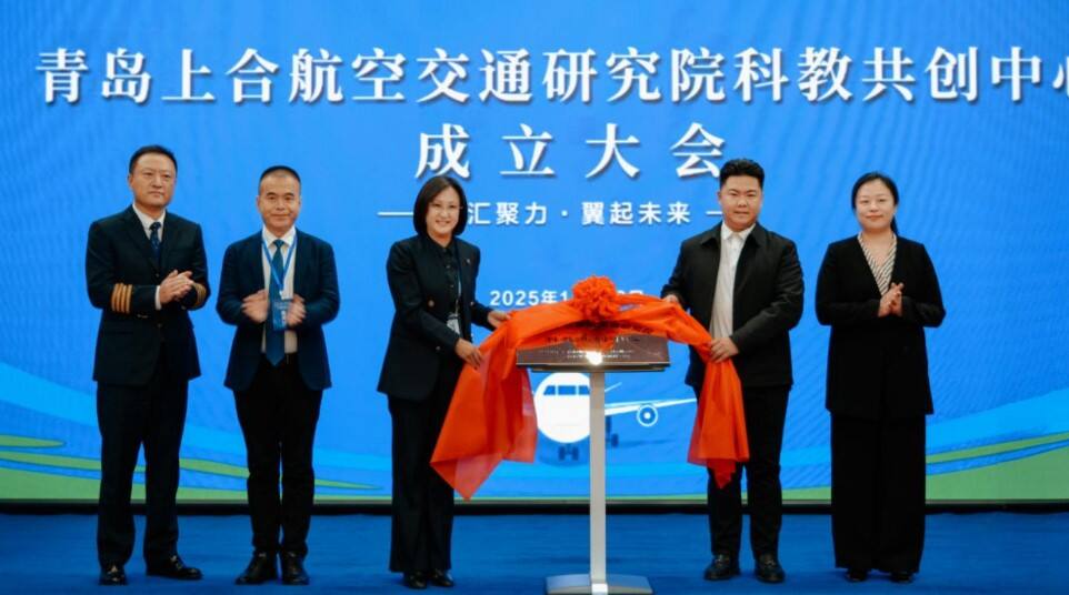 青岛胶东航空交通研究院与青岛航空公司培训中心完成合作计划书签署,并共同为“青岛上合航空交通研究院科教共创中心”揭牌,标志着该协同创新平台正式启动运行。