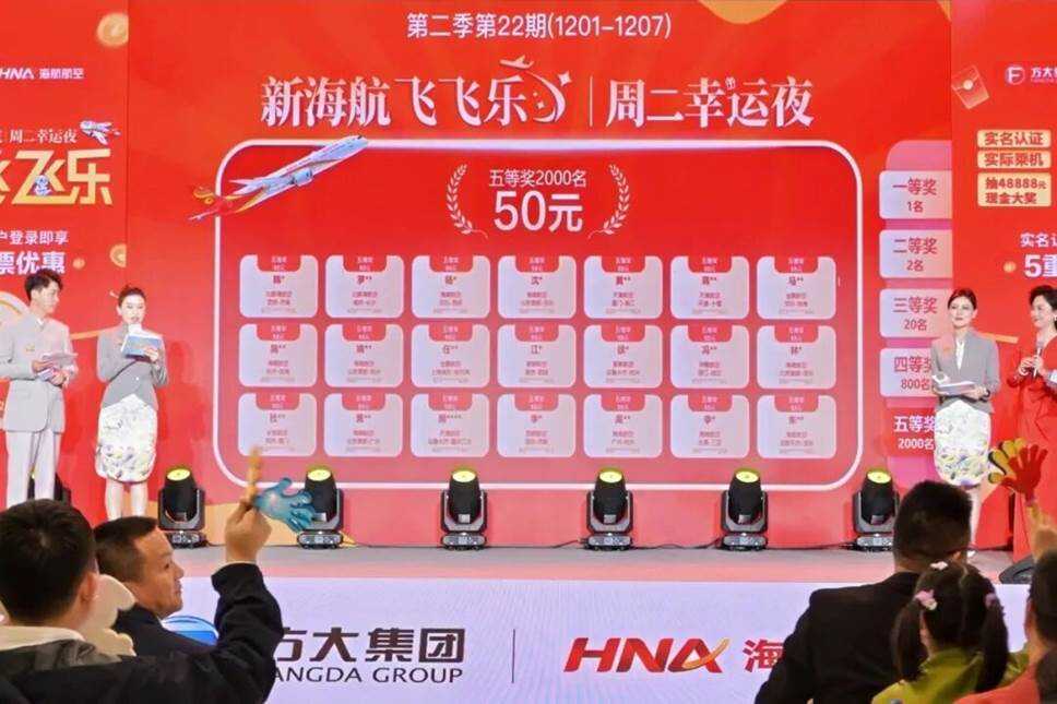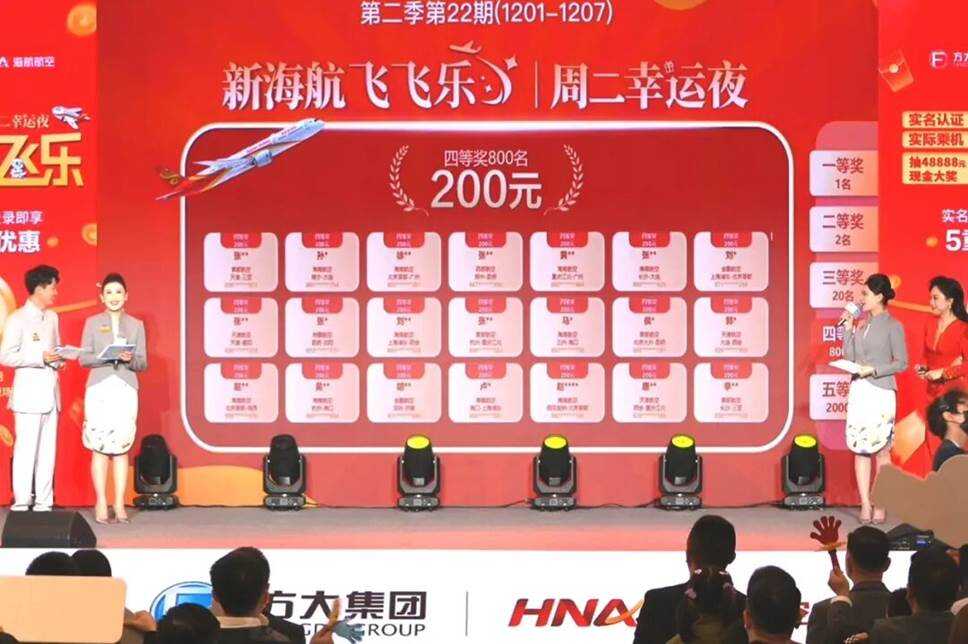 “飞飞乐”周二幸运夜现金抽奖活动是新海航在“消费后奖励”领域的生动实践。每周二都设置48888元、5000元、1000元、200元及50元多档现金奖励,在前一个自然周内持中国大陆有效身份证件实际乘坐过新海航旗下11家境内航司任一航班的实名认证旅客均可无门槛参与,并为符合条件的旅客设置了享多倍抽奖机会的额外奖励机制。
