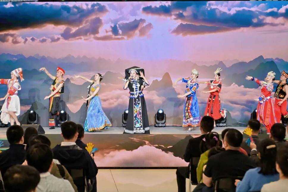 本期直播落地广西南宁,邀请到了全国青联委员、广西广播电视台十佳主持人沈鹏鸣与新海航乘务员组成主持团联袂登场,并通过极具广西壮族自治区民族特色和人文风情的歌舞节目《大地飞歌》《山歌好比春江水·新编》《美丽中国》等精彩节目,展现壮族音乐的独特魅力与广西人民的热情好客、呈现广西秀美的山水人文与时代气息,大力推荐广西文旅线路和出行目的地,从地方经济发展需要出发,与当地文旅携手推动落实航文旅融合发展目标,借力“飞飞乐”品牌为经济社会发展积极助力。