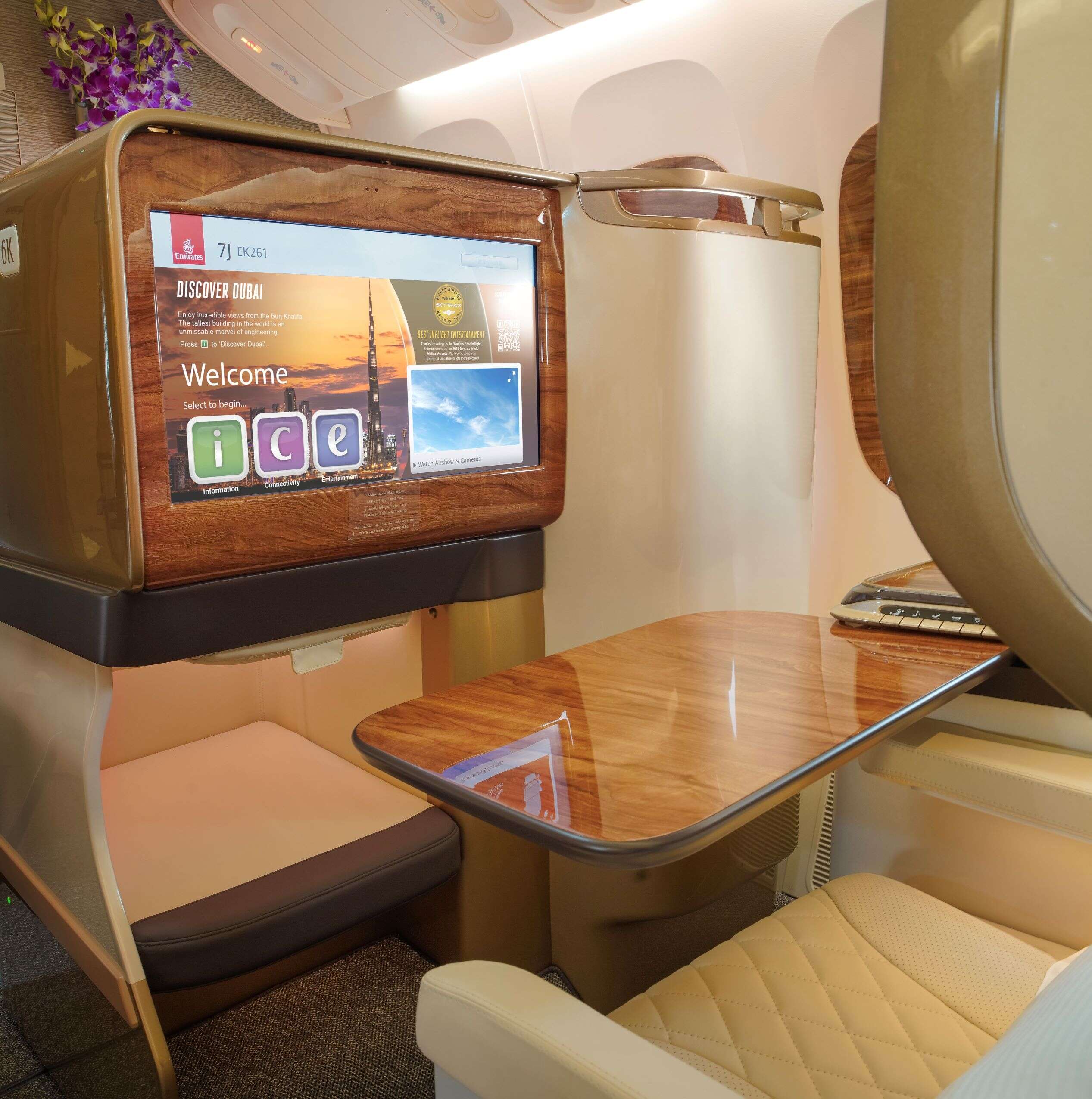 阿联酋航空头等舱私人包间,以其焕然一新的内饰,将持续呈现乘客所期待的旗舰级舒适、私密与奢华体验。