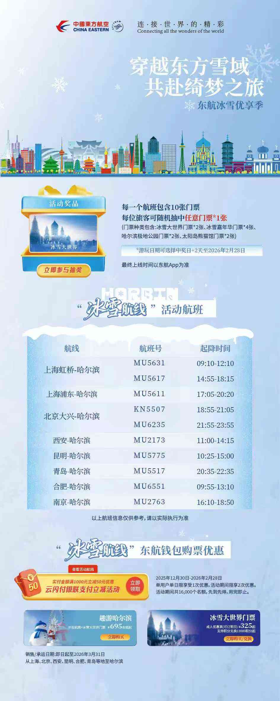 这个冬天,不妨搭乘东航航班,赴一场与“尔滨”的浪漫之约,在冰雪世界中邂逅别样温暖!