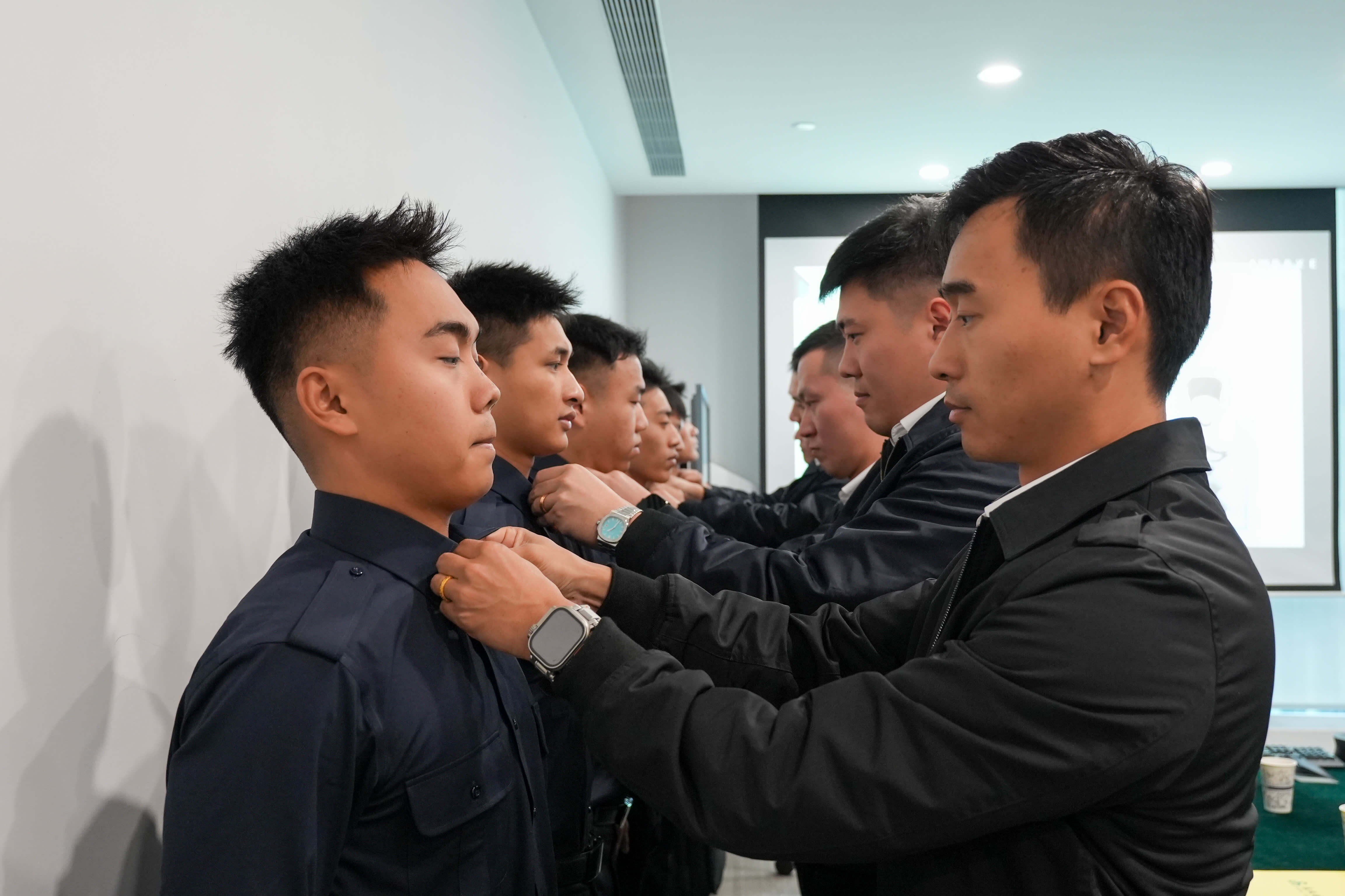 春秋航空秉承“传帮带”的优良传统,从众多员工中精心挑选出业务能力出众、口碑载道的资深员工,担任这批安全学员的带教师父。通过这种“以老带新”的教学模式,帮助员工更快成长,更激发了队伍的活力与创造力。作为带教师父代表,驻港部队退伍军人、春秋航空首批安全员许申圣承诺:“我们会把特勤处置的每一个细节、安保执勤的每一项准则,毫无保留地传给徒弟们。”