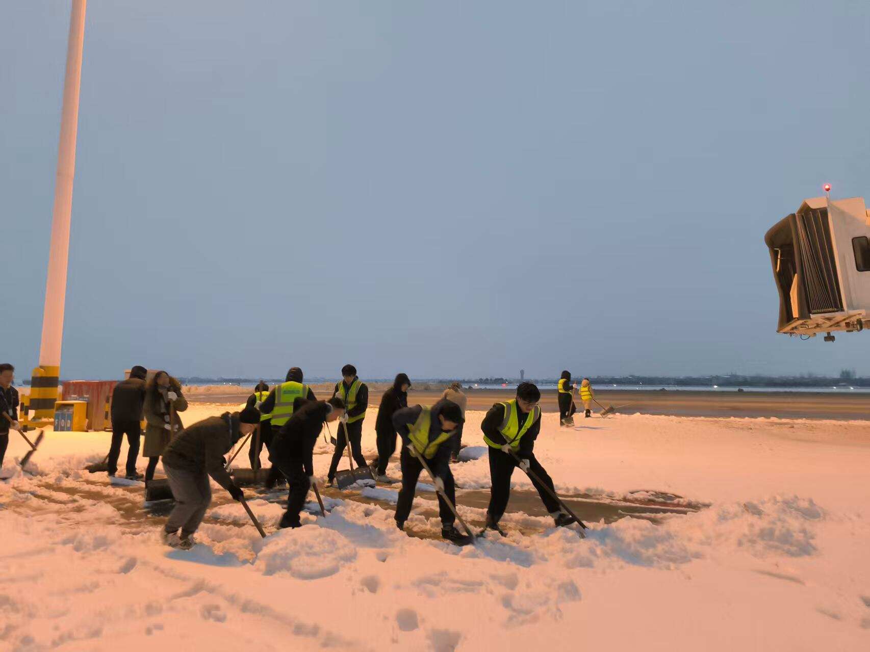 针对本轮特殊天气保障,襄阳机场及时召开三次极端天气应急会商会议,围绕除冰雪作业、机场运行保障、应急响应处置三大重点领域进行全链条部署,推动保障工作各环节精准到岗、责任到人。公司领导及各部负责人于18日晚提前进场备勤,并牵头组建由职能部门干部员工组成的应急除雪先锋队,实行24小时值班值守机制。运行指挥中心充分发挥“神经中枢”作用,强化多方协同调度,全程严密监控航班运行态势。襄阳机场空管站密切追踪气象变化,第一时间发布雪情预警信息。