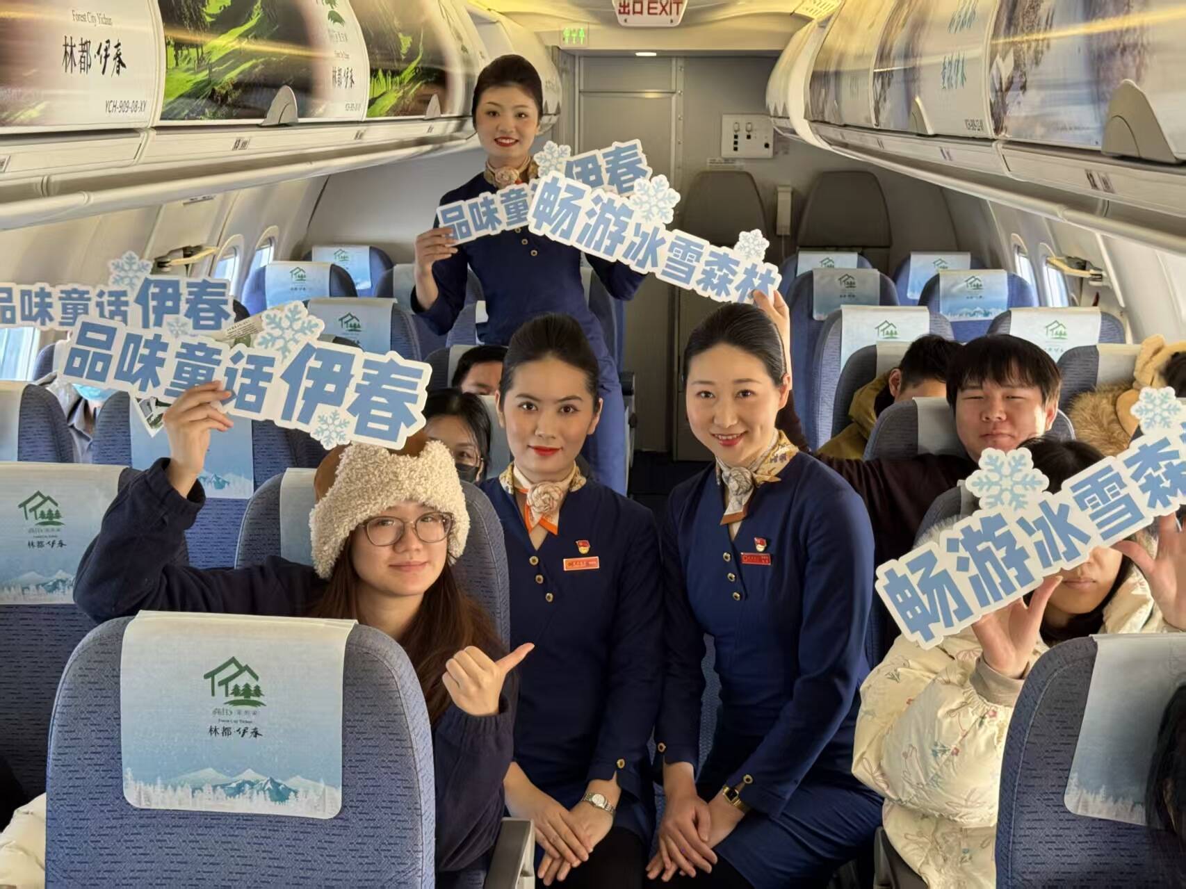 为庆祝“伊春号”主题飞机启航,成都航空在首航航班上开展了丰富的主题客舱活动。航班抵达后,乘客们纷纷驻足,与这部“飞行中的艺术品”合影留念。“不仅外观惊艳,客舱内也充满了森林气息,仿佛提前步入了伊春的四季画卷。”一位旅客分享道。