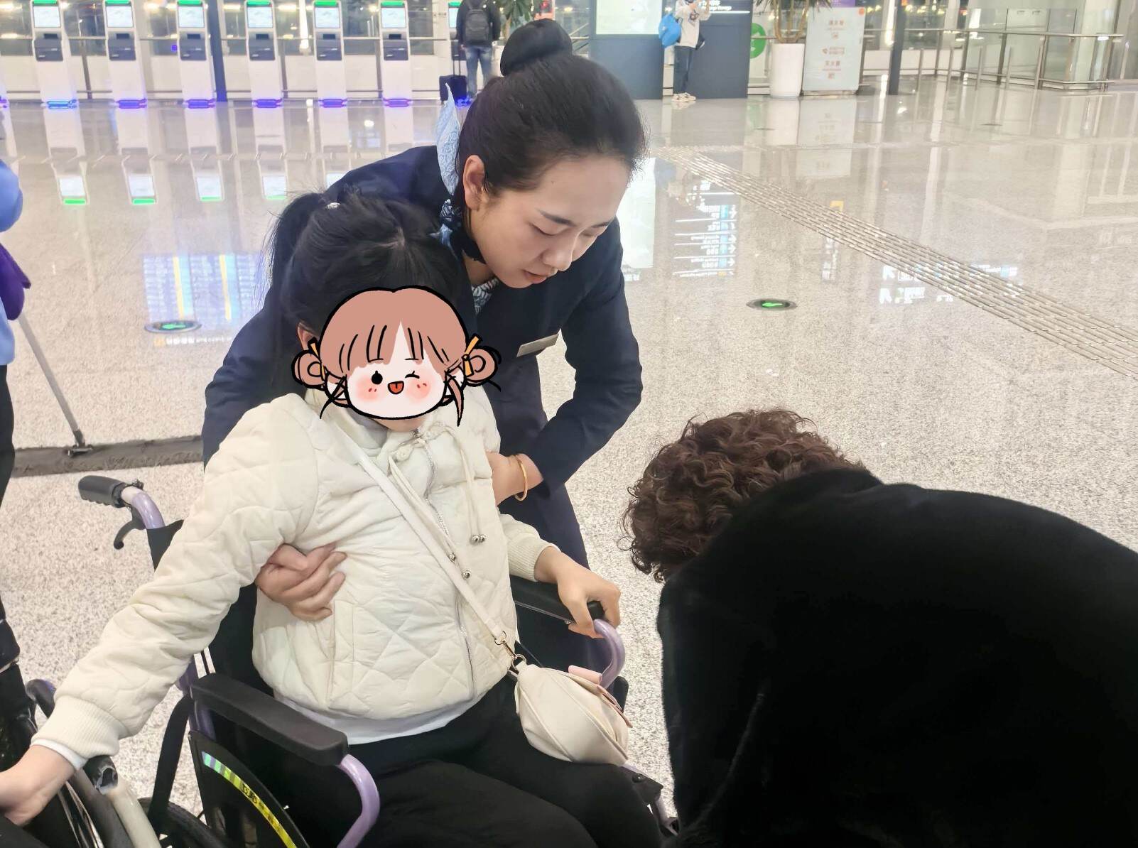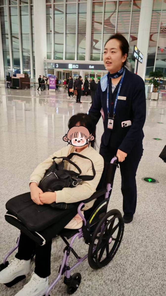 考虑到考生无法行走、两位老人行动迟缓,地服员全程贴心护送,并提前与登机口工作人员沟通协调,确保登机过程无缝衔接。最终,在舱门关闭前5分钟,成功将考生及其家属送至登机口,保障他们顺利登机。
