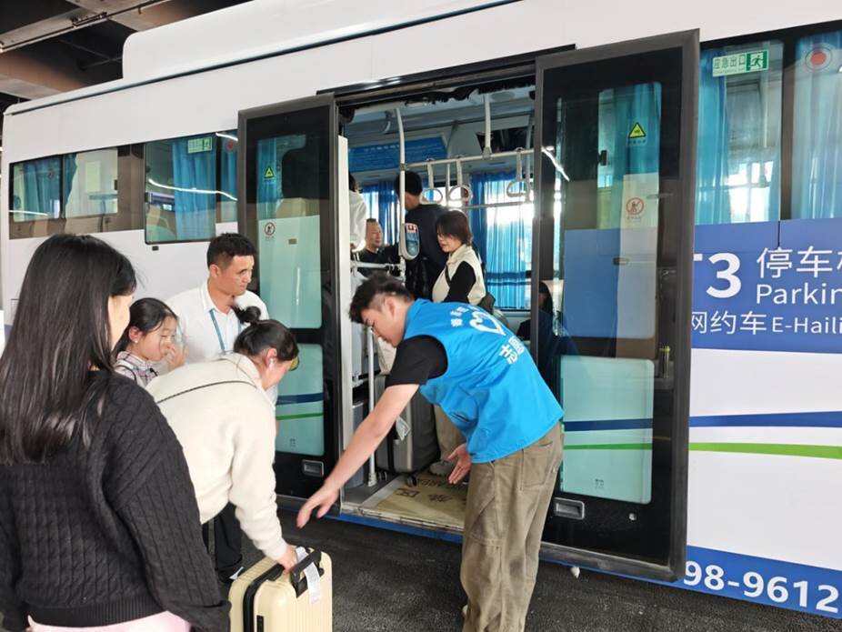 为优化旅客出行体验,三亚机场团委将志愿者力量重点部署在T3航站楼到达口、摆渡车乘车点等客流密集区域,开展问询指引、行李协助、换乘引导等暖心服务,成为保障T3航站楼平稳运行、助力春运旅客顺畅出行的重要“生力军”。从值机大厅到出租车等候区,从摆渡车旁到旅客身边,青年志愿者的身影遍布机场各服务点位。他们精准对接旅客需求,提供全流程的温情帮扶。