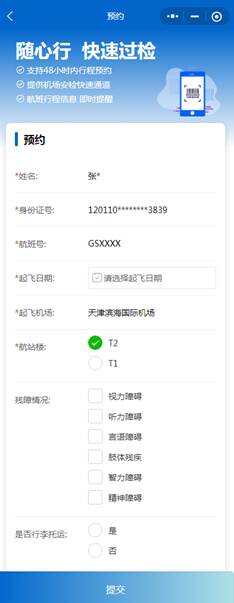 除了智能翻译手语外,各类残障旅客还可登录“鲸言随心行”小程序,预约使用轮椅、人工引领等乘坐天津航空航班出行服务。旅客仅需提前上传航班信息及服务需求,天津航空便会将服务前置,提前安排工作人员通过小程序回复告知残障旅客服务点位,实现供需精准对接与服务无缝衔接,全方位保障残障旅客安心出行、畅行无阻。