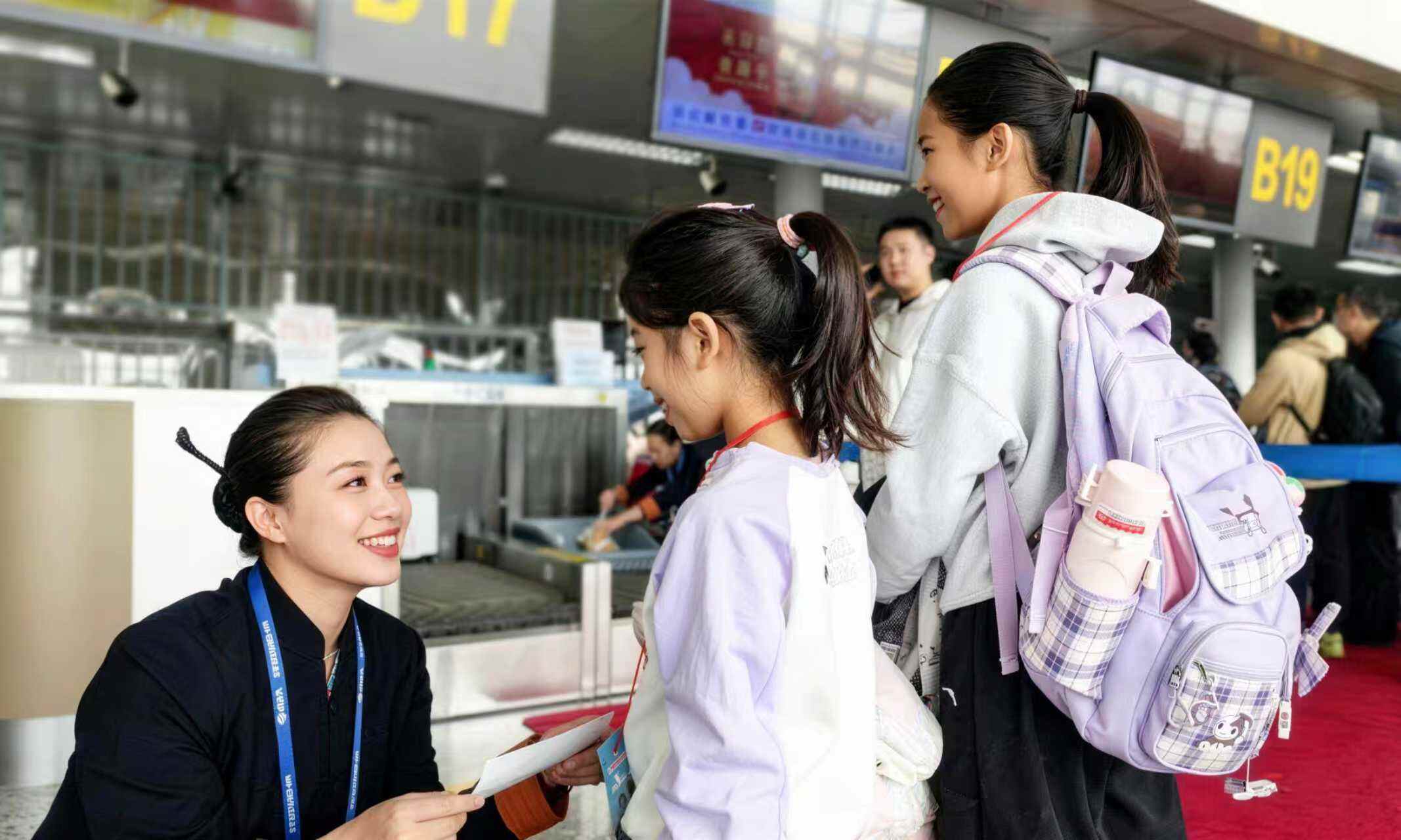 同时,石家庄机场进一步延伸服务,针对刚满12周岁首次乘机的青少年旅客,机场会为其粘贴“首乘”旅客贴,方便工作人员识别,在旅客乘机中的各环节,为其提供指引服务。