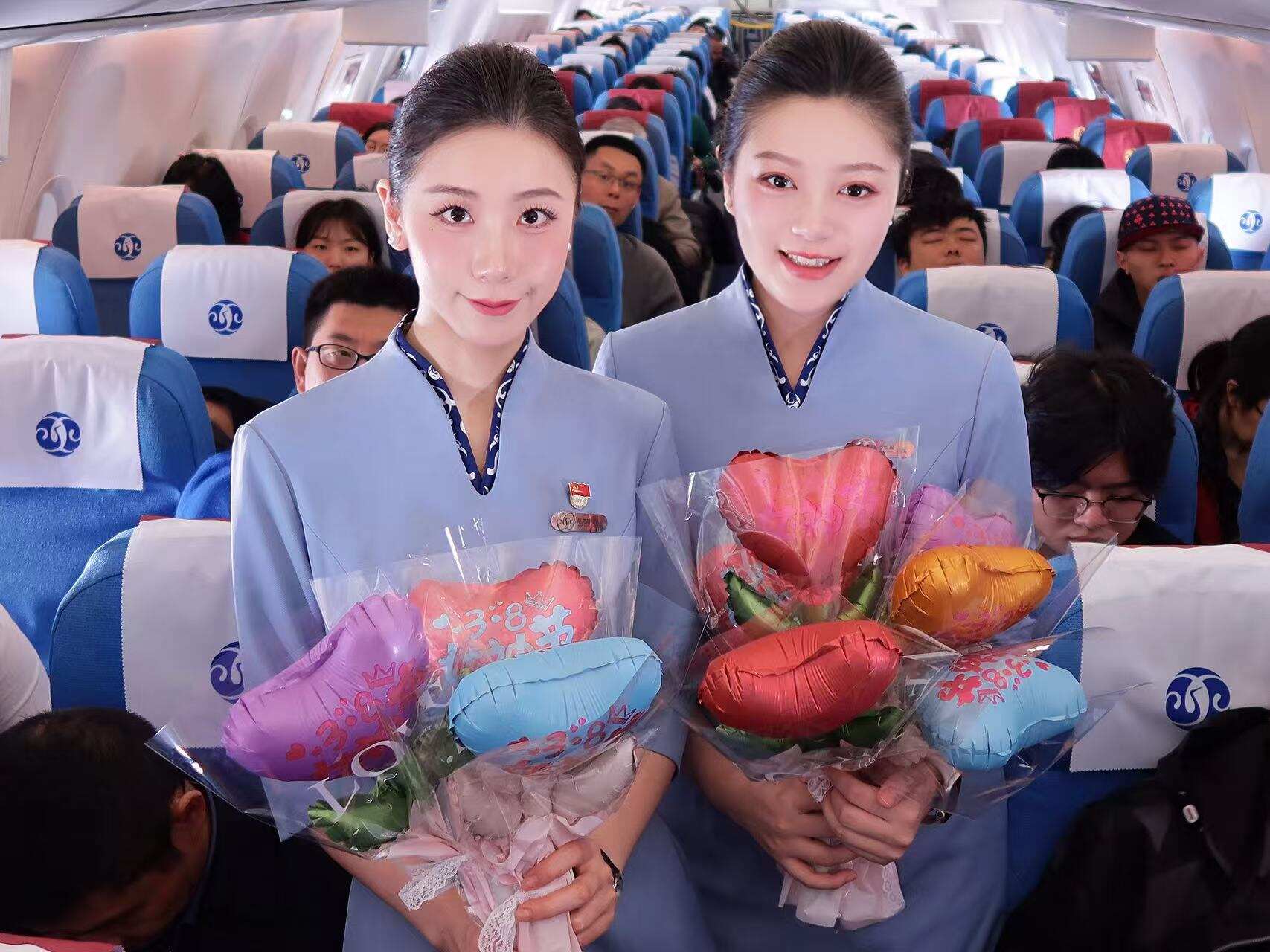 活动伊始,乘务组以温暖的开场词,向客舱内所有女性旅客送上诚挚祝福:“感谢你们以温柔坚韧的力量,撑起生活与职场的半边天,用热爱与担当,点亮世界的每一个角落。”