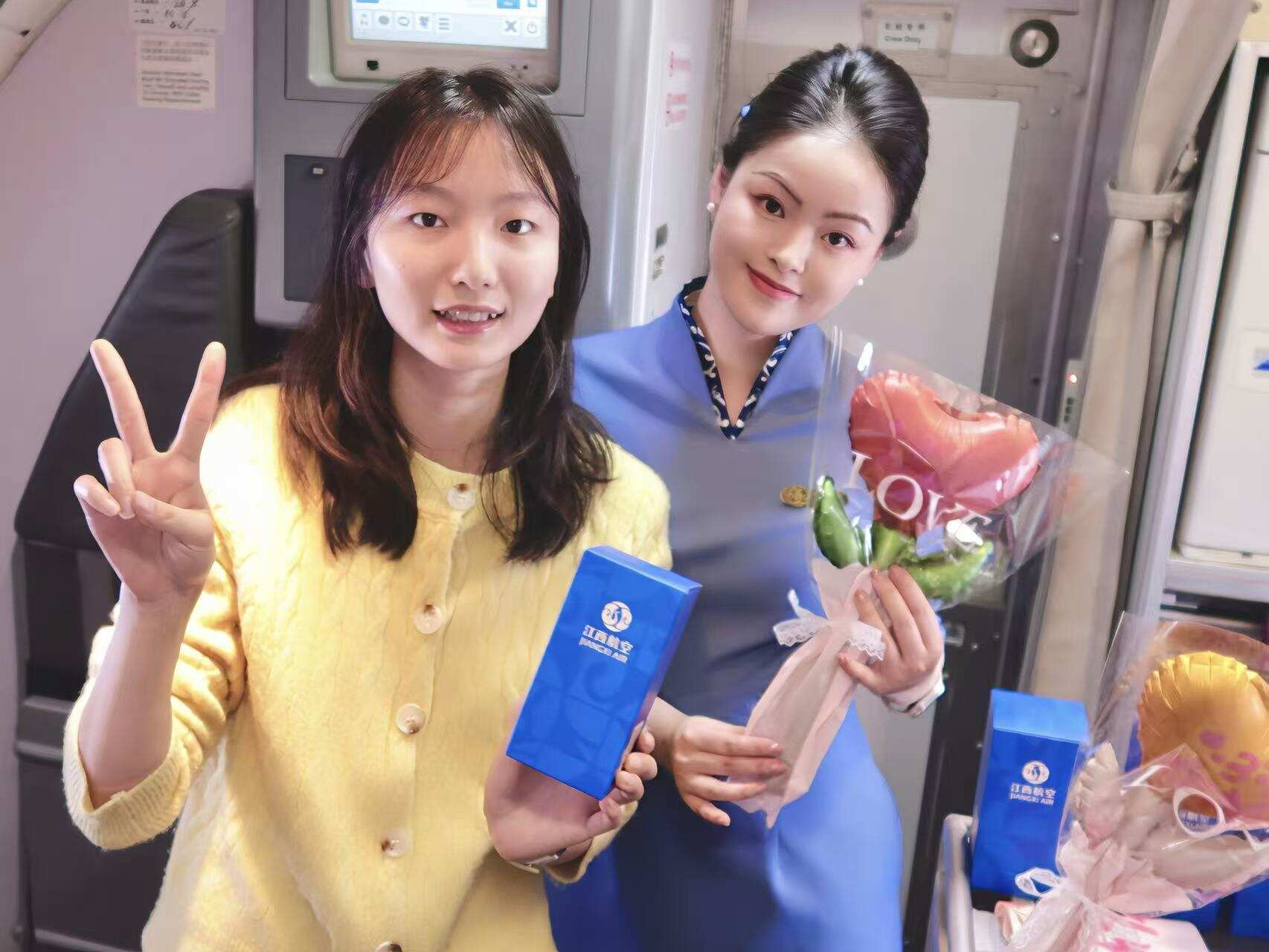 三万英尺高空,春风与祝福同航。在第116个“三八”国际妇女节来临之际,江西航空RY8821航班特开展“云端绽芳华·赣韵敬巾帼”主题机上活动,以云端专属仪式感,致敬每一位了不起的“她”。