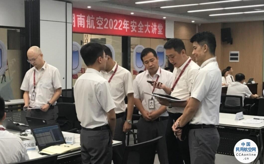 中国民用航空网讯(通讯员:姜海坤 陈桂香)“湖南航签派,乐程7766客舱有锂电池冒烟,2名歹徒劫持旅客,意图进入驾驶舱……”,6月22日上午,随着空管信息通报的响起,“迅雷2022”综合实战演练正式拉开序幕,本次实战演练是湖南航空自开航以来演练规模最大、处置流程最长的演练,也是湖南航空迁转至湖南后融入湖南、立足湖南的一次综合实战演练,充分利用了公司在互联网的优势,将湖南航空应急指挥中心、机上、机坪等多个场所的演练场景汇集到长沙机场应急总指挥部展示。